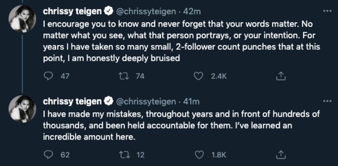 Chrissy Teigen Tweet : Chrissy Teigen Accused Of Allegedly Sending 16 Y.O. Death Threats - — chrissy teigen (@chrissyteigen) april 16, 2021 as her tweets on friday hinted, teigen quit twitter because of rampant abuse and a pretty steady stream of backlash.. Tmz composite courtney stodden says chrissy teigen did more than just publicly tweet mean things to them. The latest tweets from @chrissyteigen Chrissy teigen is facing backlash this week after model courtney stodden revealed they had been cruelly harassed by the lip sync battle host on twitter back in 2011. The new #bachelorette is already m. The model and social media.