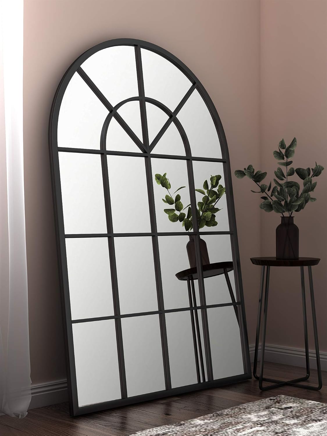 Large rustic gold metal frame arch window style wall mirror living room hallway.