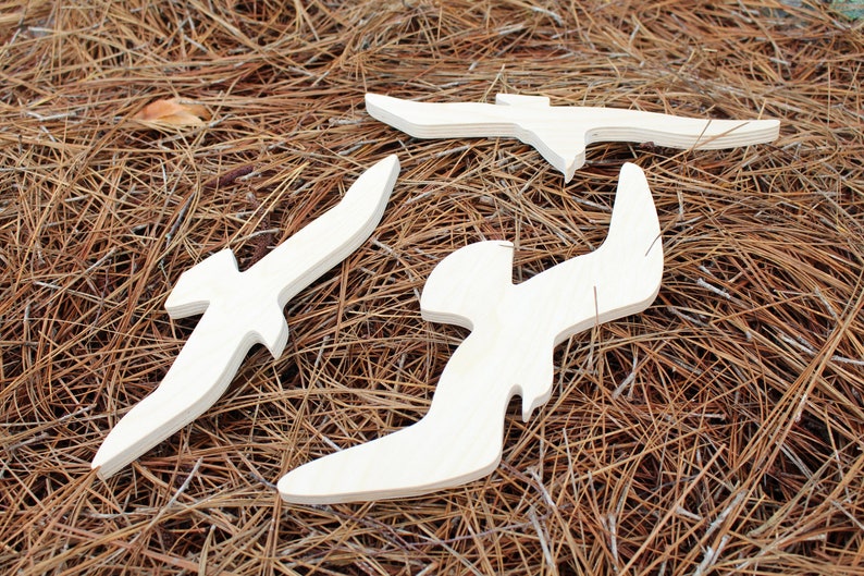 Hand cut wood seagulls refinished in an array of.